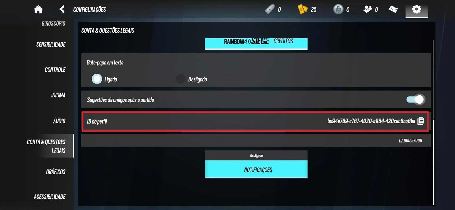 Para realizar a compra de Platinas, é necessário informar corretamente o ID de Perfil da sua conta do R6M.